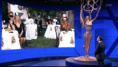 La pandemia por el coronavirus ha hecho que la gala de los premios Emmy 2020 sea la más atípica de su historia. En el Staples Center de Los Ángeles se encontraba Jimmy Kimmel prácticamente solo, aunque Jennifer Aniston hizo una breve aparición estelar al comienzo de la gala. Eso sí, dio mucho juego.