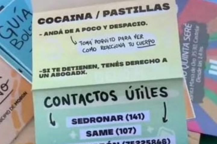El mensaje fue lanzado por el Gobierno de la localidad bonaerense de Morón, en la periferia oeste de Buenos aires, que repartió el pasado fin de semana en un festival musical folletos orientados a jóvenes aconsejando ir “de a poco y despacio” en el consumo de cocaína y pastillas de drogas sintéticas.