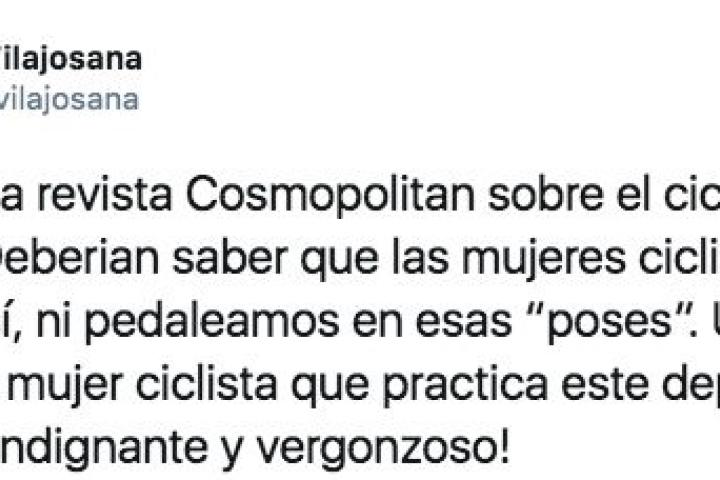 Marta Vilajosana, una exciclista que participó en los Juegos Olímpicos de Pekín en 2008 tanto en la prueba de ruta como en la de contrarreloj, ha criticado a la revista Cosmopolitan por un reportaje sobre el ciclismo femenino.
