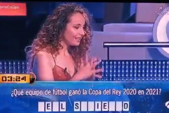 Todo ocurrió cuando la participante tenía que dar respuesta a la pregunta ”¿Qué equipo de fútbol ganó la Copa del Rey 2020 en 2021?”. La cuestión tenía su miga, dado que este año se disputaron dos finales del torneo en dos semanas consecutivas: la primera la ganó la Real Sociedad y la segunda el Barcelona. Ambas frente al Athletic de Bilbao.