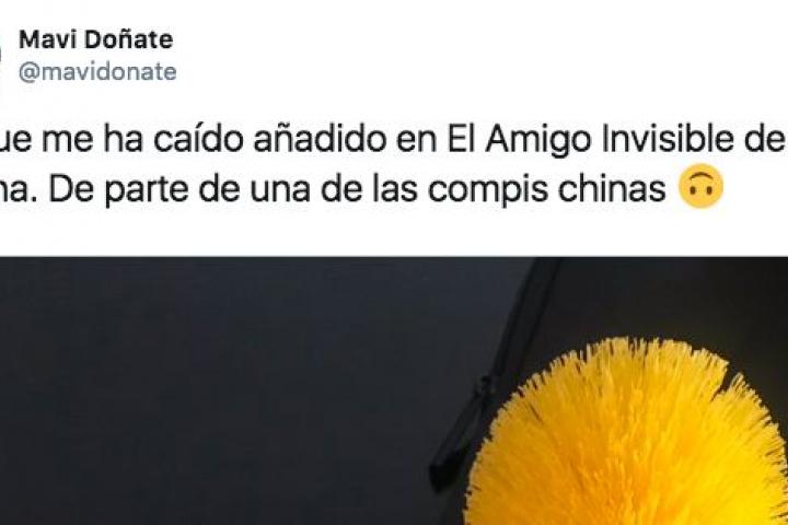 “Lo que me ha caído añadido en El Amigo Invisible de la oficina. De parte de una de las compis chinas”, ha escrito. Lo que se puede ver en la fotografía junto a la publicación es una escobilla de váter con la cara de Donald Trump, presidente de los Estados Unidos.