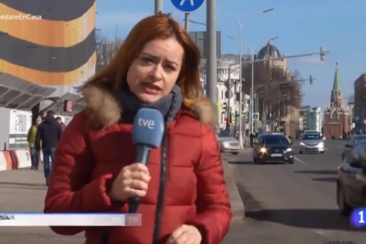 La periodista ha contado en el Telediario del ente público que Rusia fue uno de los primeros países en cerrar sus fronteras y los lugares más emblemáticos de Moscú están vacíos.