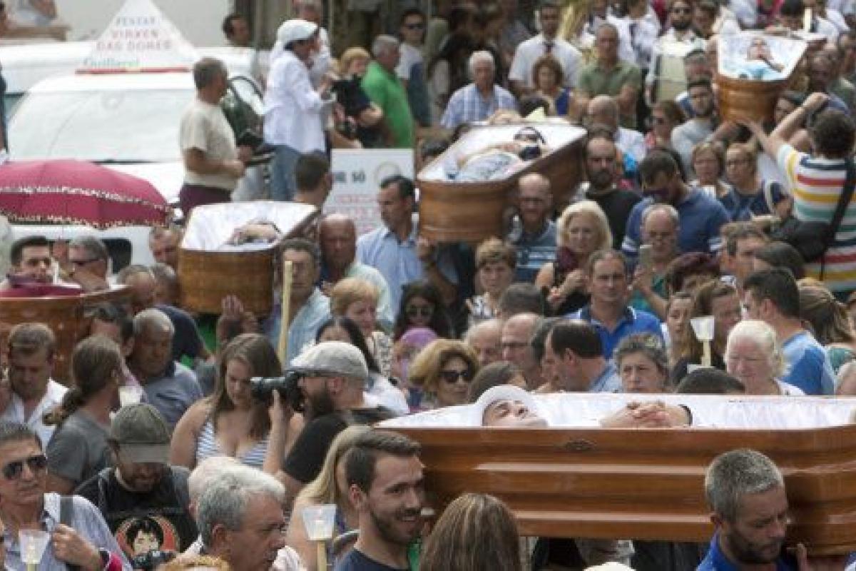 En As Neves (Pontevedra) se celebra la romería de Santa Marta de Ribarteme, donde diez personas dan gracias a la virgen metiéndose en ataúdes.