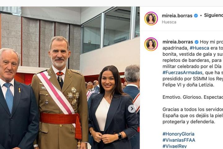 Foto de Mireia Borrás, diputada del partido de ultraderecha Vox, con Felipe VI.INSTAGRAM: MIREIA BORRÁS