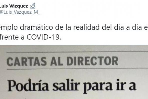 Luis Vázquez, un médico especialista en análisis clínico, ha sido el encargado de compartir en Twitter la carta al director. “Un ejemplo dramático de la realidad del día a día en la lucha frente a covid-19”, ha reflexionado.