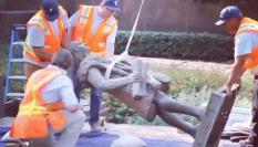 Una estatua de Cristóbal Colón aparece con un pene de plástico en la cabeza