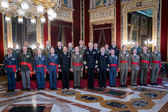 La cuenta de Twitter de la Casa Real ha publicado un tuit con el que ha escrito: “El Rey recibe en el Palacio Real de Madrid a un grupo de oficiales de Fuerzas Armadas y Guardia Civil pertenecientes a las promociones que conmemoran su 40º aniversario del egreso de las academias”.