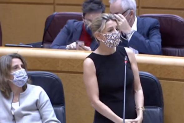 “Veo ahora a Yolanda Díaz en tirantes en el Senado y no puedo evitar la comparación ¿el frío en pandemia es también cuestión de clases?”, se ha preguntado.