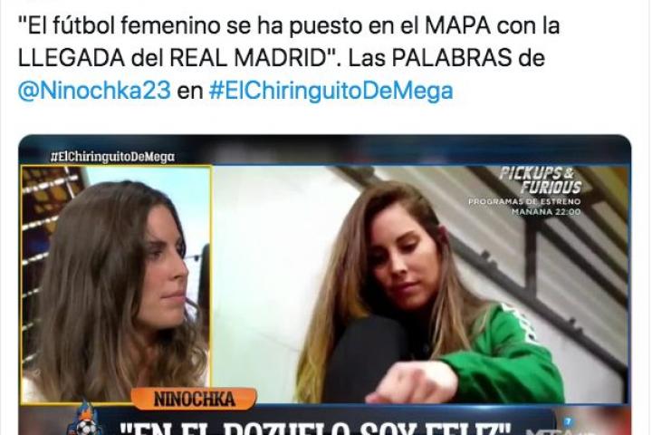 El espacio se hacía eco de unas declaraciones que había hecho Ninochka Gómez, portera del Alcorcón: “El fútbol femenino se ha puesto en mapa con la llegada del Real Madrid”.