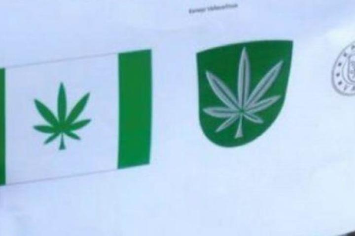 La ciudad han adoptado la bandera y el escudo con el símbolo de esta droga el pasado 16 de mayo, después que cerca de 12.000 personas —más del doble de los habitantes— votasen la hoja de cannabis verde sobre un fondo blanco como enseña local.