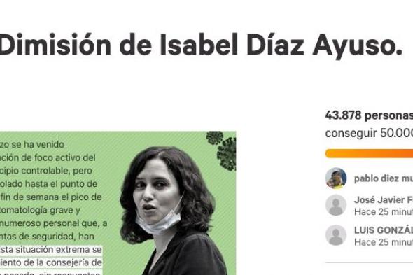 Una iniciativa de Change para que Ayuso dimita revive y se acerca a las 50.000 firmas