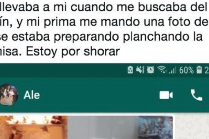 "Le dije a mi abuelo que mañana lo voy a llevar a comer pizza en el mercado, como él me llevaba a mí cuando me buscaba del jardín, y mi prima me mandó una foto de que ya se estaba preparando planchando la camisa. Estoy por shorar", ha escrito la usuaria de Twitter junto a una captura de la conversación y la foto de WhatsApp