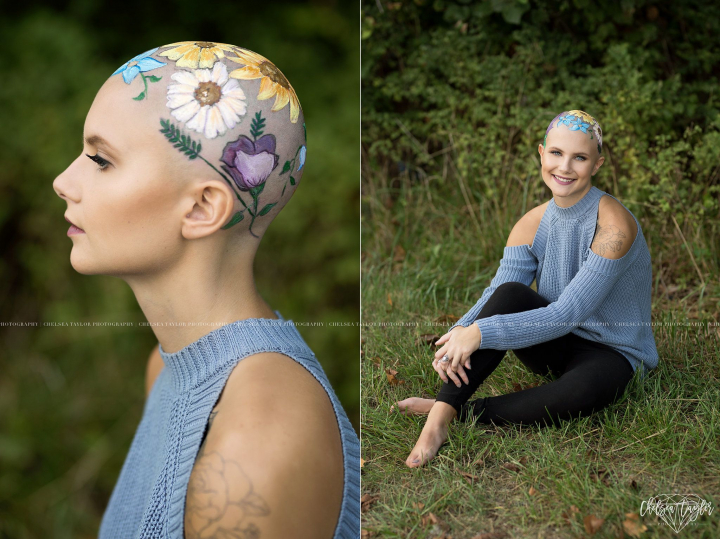 Madisyn Babcock, de Kansas (Estados Unidos), pidió a su madre artista que le pintara flores en la cabeza para la sesión. Con ella espera concienciar acerca de esta enfermedad y "reivindicar la belleza que la sociedad a veces arrebata a quienes tienen alopecia".