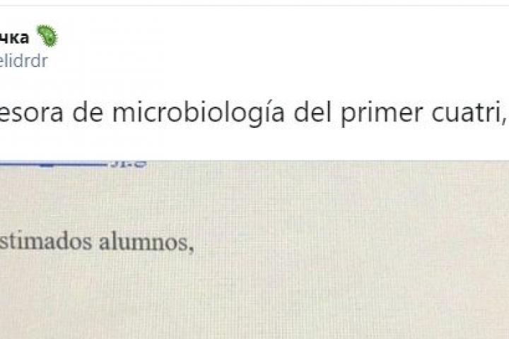 La joven ha compartido en su perfil de Twitter el mensaje que le ha enviado la profesora que tuvo en el primer cuatrimestre de Microbiología, una ciencia que hoy en día ocupa a diario noticias en los medios de comunicación para conocer mejor al virus.