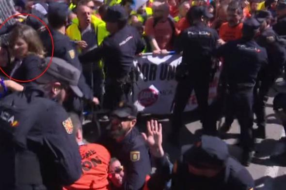 La Policía hizo una descripción similar de la participación de Yolanda Díaz y Ángela Rodríguez. En el caso de Gómez Reino, detalla que empujó dos veces a un policía con las dos manos mientras le decía “qué estáis haciendo” o “estamos locos”.