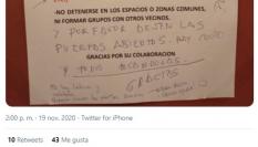 “Hace un mes nos dejaron este mensaje en la verja de la librería y lo hemos dejado puesto porque...💖”, han escrito desde la cuenta de la red social La Klari Moreno.