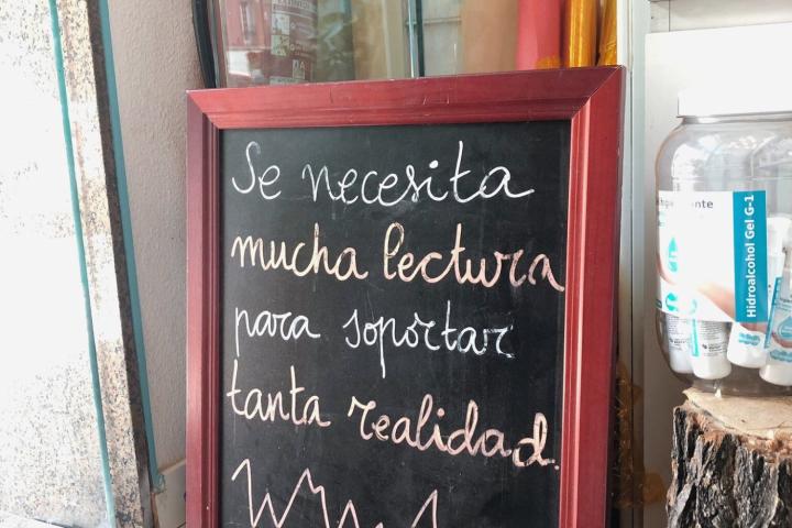 Eso es lo que ha hecho a las mil maravillas la madrileña librería Velázquez, situada en el madrileño paseo de Extremadura. “Se necesita mucha lectura para soportar tanta realidad”, han escrito en una pizarra.