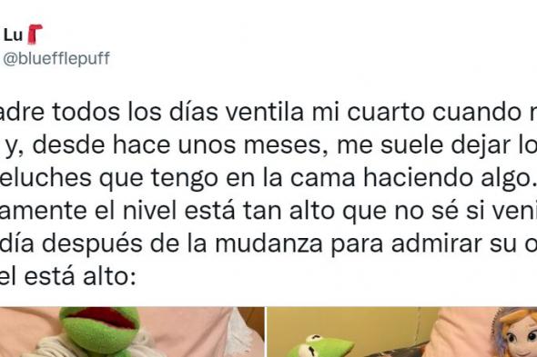 “Mi madre todos los días ventila mi cuarto cuando no estoy y, desde hace unos meses, me suele dejar los dos peluches que tengo en la cama haciendo algo. Últimamente el nivel está tan alto que no sé si venir cada día después de la mudanza para admirar su obra”, ha escrito.