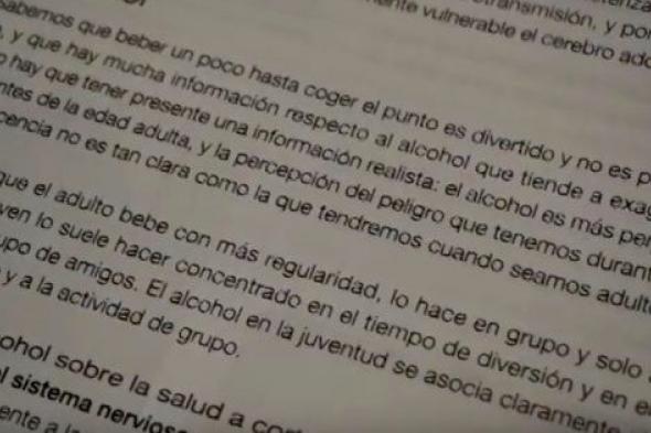 Una madre logra cambiar la frase "beber un poco hasta coger el punto es divertido" de un libro de texto de 3º de ESO