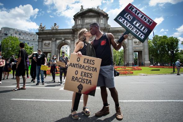 Este domingo, la concentración autorizada de 200 participantes frente a la embajada estadounidense en Madrid se convirtió en una manifestación pacífica de unas 3.000 personas; en Barcelona, otras 3.000 personas se congregaron en la plaza Sant Jaume. Y entonces se produjo la polémica. Los críticos se dividían entre quienes vaticinaban nuevos rebrotes a causa de la acumulación de personas y quienes condenaban que se permitieran estas marchas y no otras celebraciones.