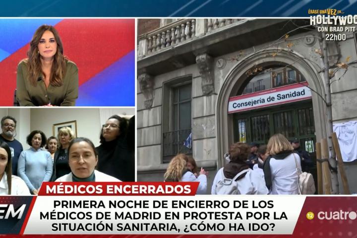 El programa de Todo es mentira (Cuatro) ha entrevistado este viernes a los médicos que se han encerrado en la Consejería de Sanidad para exigirle al Gobierno de Isabel Díaz Ayuso (PP) que tome medidas mejorar las condiciones de los profesionales sanitarios y terminar la huelga.