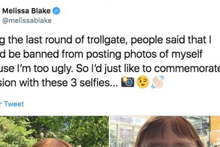 Blake tiene que convivir a diario con comentarios ofensivos sobre su físico. Recientemente, un tuitero, como ha explicado en redes sociales, le ha asegurado que en su perfil en Twitter debería tener prohibido publicar imágenes al “ser demasiado fea”.