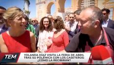 Vivió Yolanda Díaz otro momento curioso en la feria de Sevilla. Las cámaras de Todo es mentira captaron cómo se acercó a ella un casetero que unos segundos antes la había criticado.