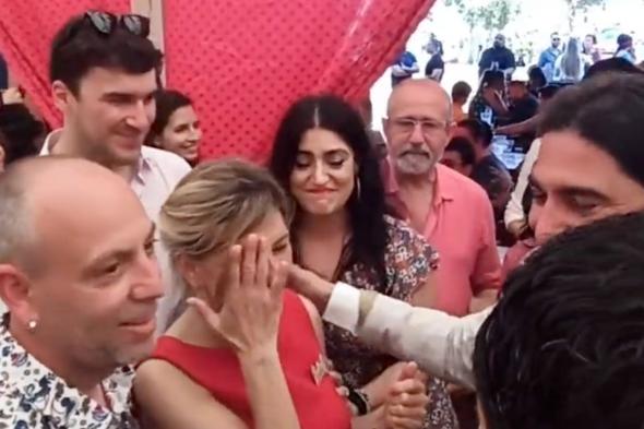 Vivió Yolanda Díaz otro momento curioso en la feria de Sevilla. Las cámaras de Todo es mentira captaron cómo se acercó a ella un casetero que unos segundos antes la había criticado.