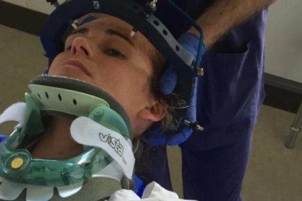 Al darse cuenta de que no podía mover el cuello, la mujer mandó a su marido un mensaje de texto, pidiendo ayuda. Le explicó lo sucedido con el altavoz puesto, incapaz de acercarse al teléfono, en pánico porque tenía a su bebé recién nacido en otra habitación. Llegaron su esposo, los sanitarios... Le colocaron un collarín y así tuvo que estar 14 semanas.