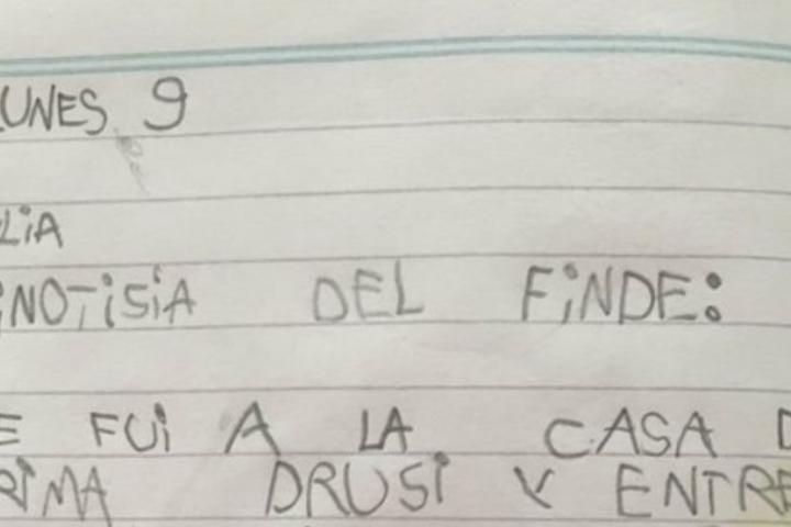 Según se puede ver en la foto que publicó, el ejercicio consistía en dibujar la “noticia del finde” de cada uno.