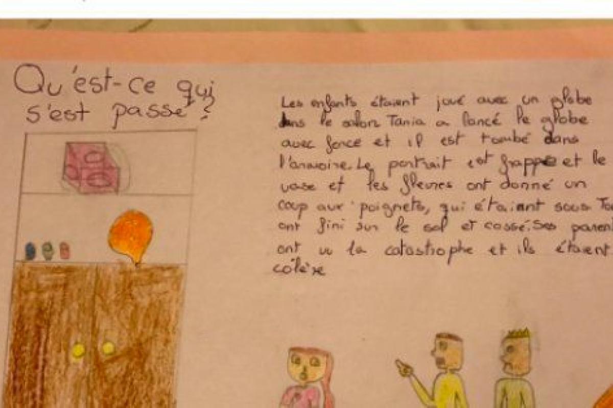 En el dibujo, la joven describía la típica situación que puede darse en cualquier casa con niños. Dos chicas estaban jugando con un globo en el salón y una de ellas lo lanzó con fuerza hasta golpear varios objetos, entre ellos un jarrón con flores, rompiéndolo.