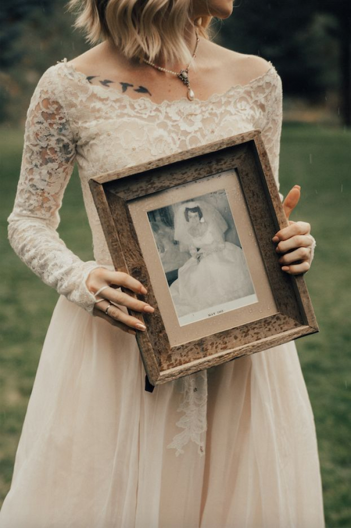 La novia se llevó una foto enmarcada de su abuela con el vestido en cuestión.Kortney J Photography