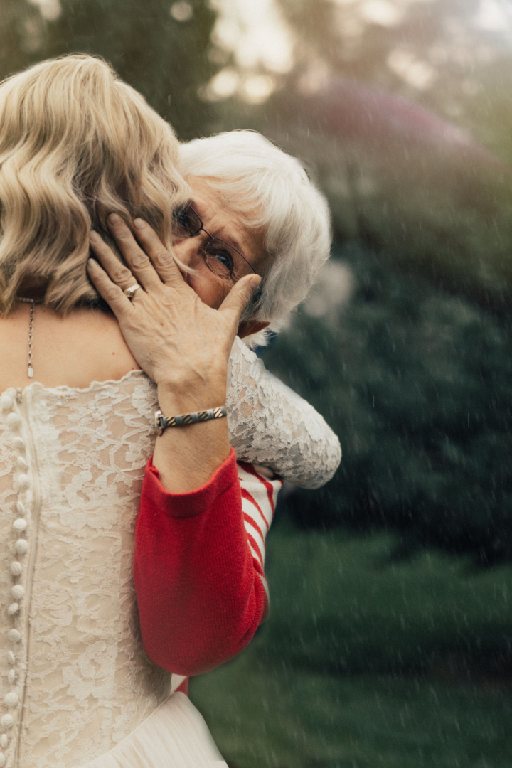 Lo que hace esta historia más tierna aún es que la novia no le contó a su abuela —cuyo marido murió antes de que Jordyn naciera— que planeaba ponerse ese vestido hasta la noche de la cena de ensayo. Ahí fue cuando Jordyn y su fotógrafa de boda, Kortney Peterson, sorprendieron a Penny durante una primera sesión de fotos.