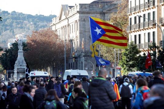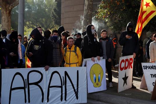 Simpatizantes independentistas protestan en las inmediaciones de la Llotja de Mar de Barcelona.