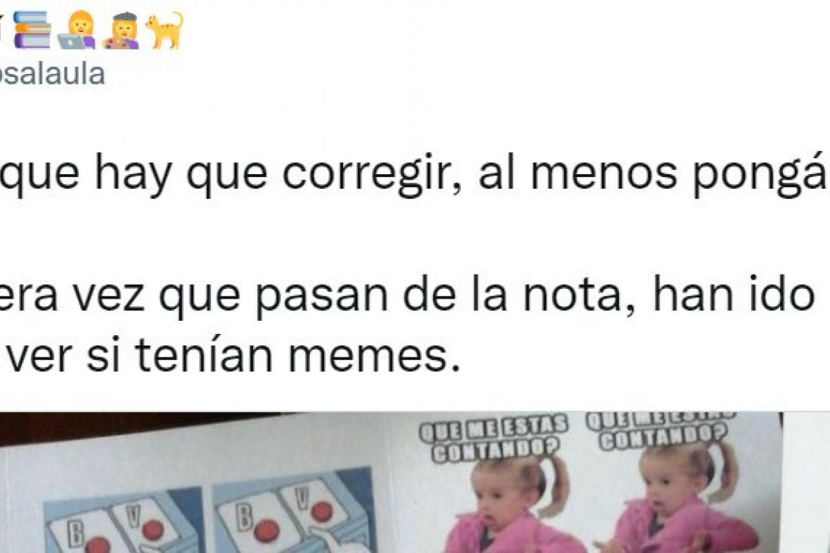 “Ya que hay que corregir, al menos pongámosle humor. Es la primera vez que pasan de la nota, han ido directos a ver si tenían memes. De hecho, alguna se ha enfadado porque no tenía memes. El próximo examen se lo lleno”, ha reconocido la docente.