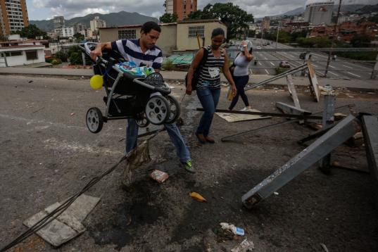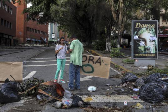 Cerca, en los sectores residenciales Montalbán y El Paraíso, el gris de las persianas metálicas era el color dominante en todas las cuadras. Ramas, escombros y bolsas de basura servían para cortar cruces cerca de una comisaría de la estatal Policía Nacional Bolivariana.
