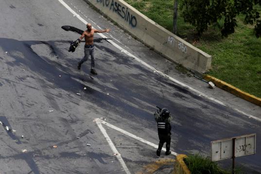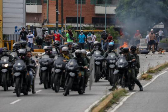 A poca distancia, en varios puntos y ya dentro de la autopista, contingentes de la policía militarizada Guardia Nacional (GN) esperaban agrupados, listos para actuar si los manifestantes deciden cortar la principal arteria de Caracas.