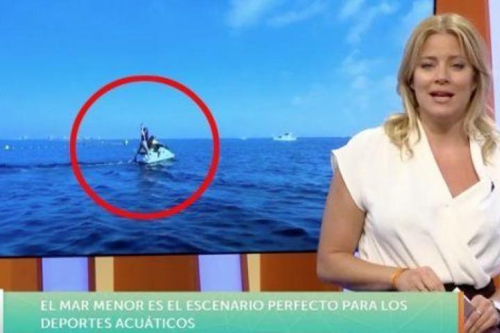 Una reportera se cae de una moto de agua en pleno directo en Murcia