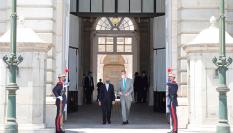 Durante ese breve paseo que va desde del Palacio a la terraza, Felipe VI y el presidente portugués se han cruzado con varios grupos de personas que han querido hacerse fotos con el monarca.