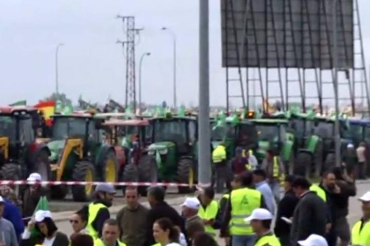 Unos 3.000 agricultores y ganaderos y 400 vehículos agrícolas de la provincia se manifiestan, convocados por Asaja-Huelva, Cooperativas Agro-Alimentarias de Andalucía en Huelva y COAG-Huelva, cortando ocho kilómetros de la A-49 -en la provincia de Huelva- entre las 11:00 y las 14:00 horas.