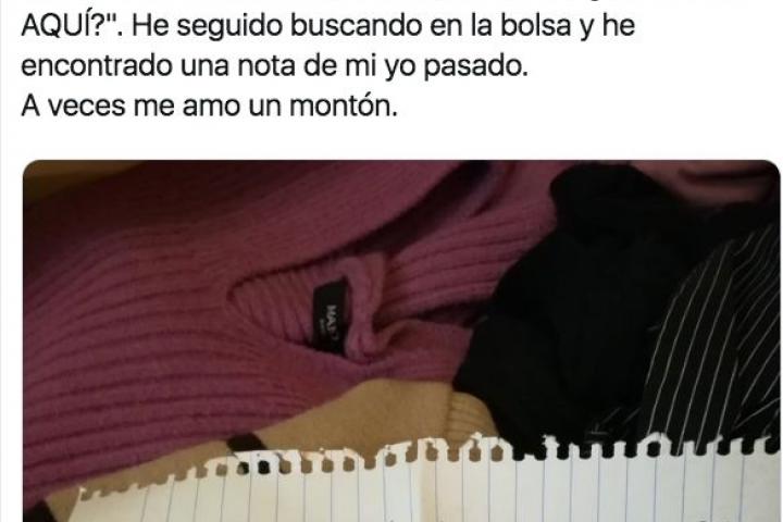 En ese montón de prendas ha encontrado una nota que estaba escrita por ella misma en la que ponía: