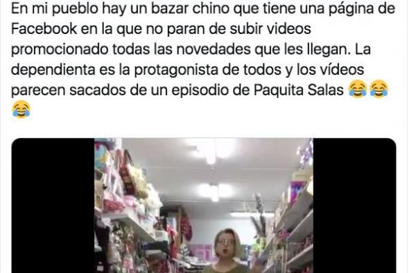 “En mi pueblo hay un bazar chino que tiene una página de Facebook en la que no paran de subir videos promocionado todas las novedades que les llegan. La dependienta es la protagonista de todos y los vídeos parecen sacados de un episodio de Paquita Salas”, ha escrito.