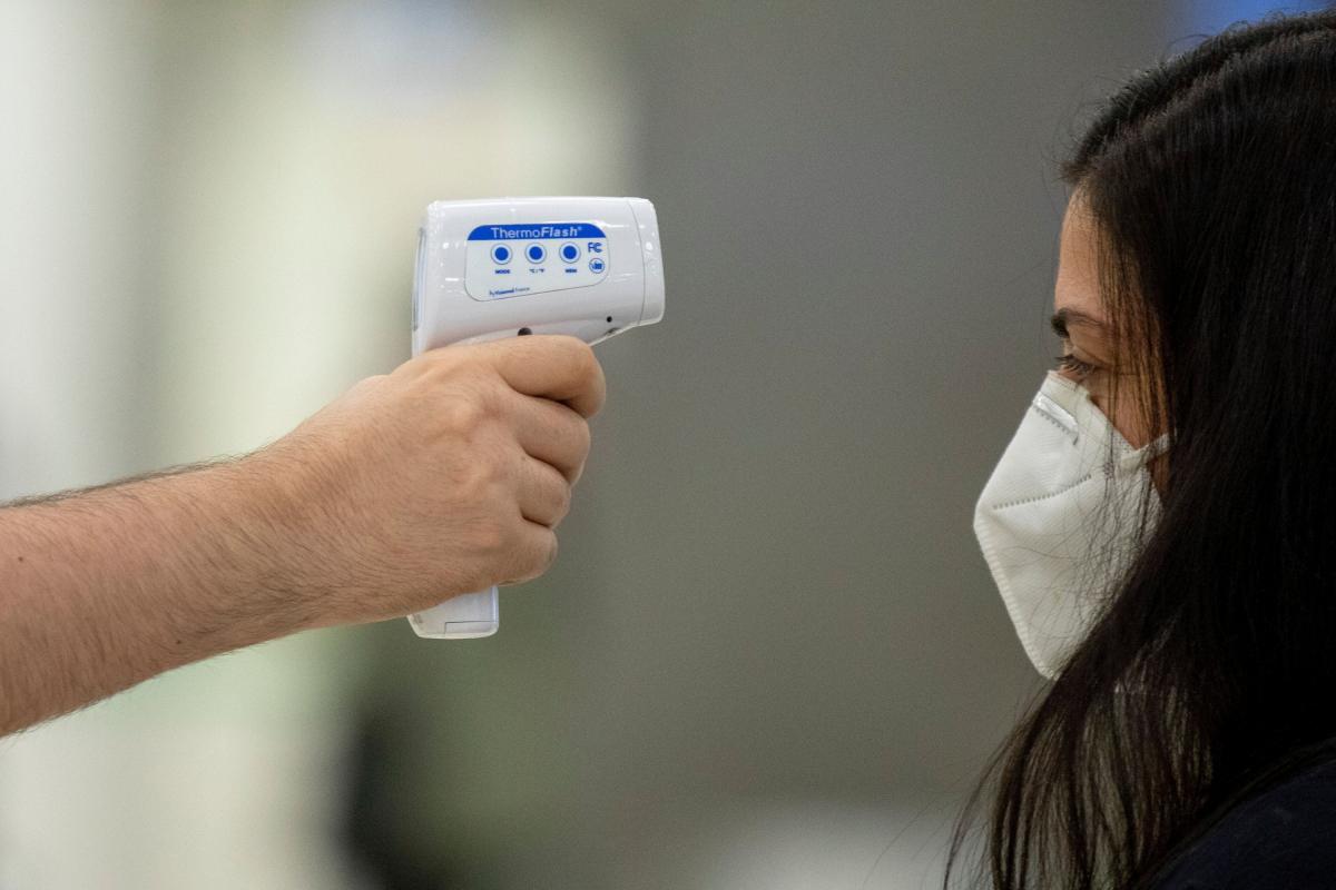 Una persona toma la temperatura a otra en Madrid.Getty Images