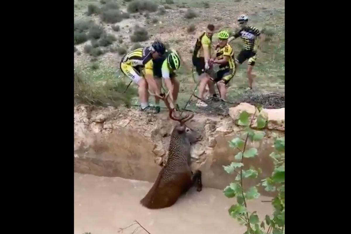 Unos ciclistas rescatan a un ciervo de morir ahogado en Huéscar (Granada)