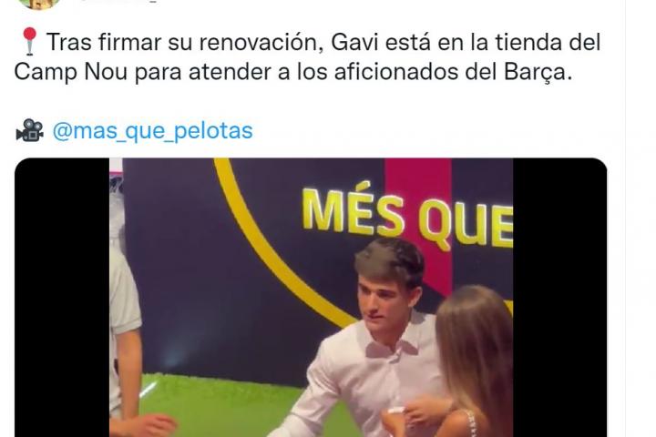 En el vídeo, que lleva más de 12 millones de reproducciones en menos de 24 horas, se observa como una seguidora del club le da a Gavi un pequeño papel que él mismo recibe sorprendido.