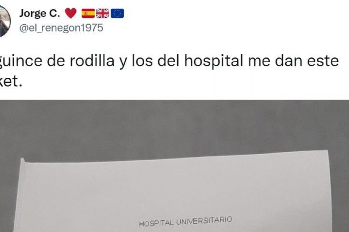 El usuario Jorge C. (@el_renegon1975) ha publicado en su perfil de Twitter el ticket que le han dado en un hospital al irse a mirar un esguince en la rodilla que había sufrido.