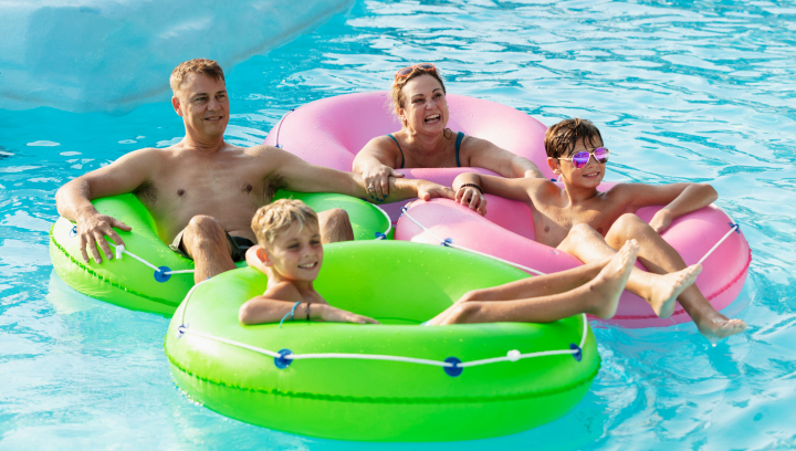 Podemos decir que Aqualand ofrece de todo. Tiene parking para dejar el coche, zonas de césped donde descansar de tanta diversión, puestos para comer algo y reponer fuerzas (aunque se permite entrar con alimentos de fuera al recinto) y, por supuesto, atracciones que harán las delicias de todos. Algunas de ellas son: Zero Gravity, cuatro toboganes muy altos en los que bajas a la piscina de aterrizaje con gravedad cero, los Speed Boats, toboganes de agua en los que te deslizas con la ayuda de un flotador, o los clásicos Rapids, que se asemejan a un río de verdad y en el que deberéis subir a un flotador para ir a través de su ajetreado recorrido.