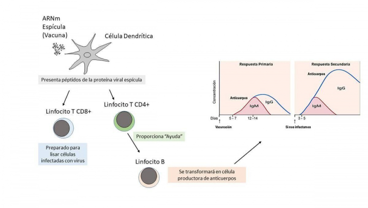 Esta vacuna utiliza un recubrimiento con lípidos para que el ARNm entre en las células del sistema inmunitario, llamadas “células presentadoras de antígeno”, fundamentalmente las células dendríticas.