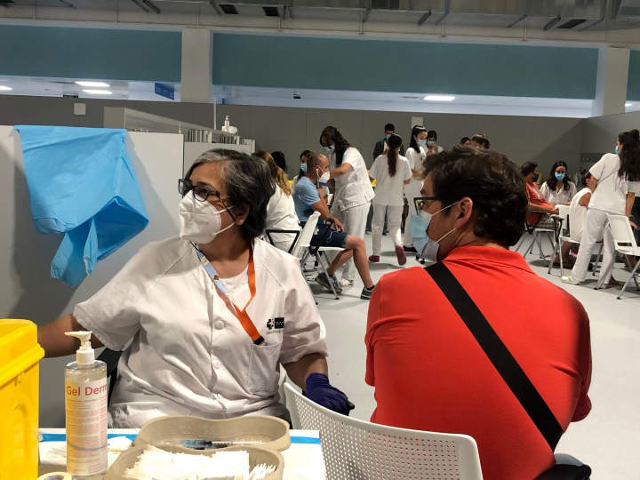 ″¿Ha pasado el coronavirus? ¿Tiene alguna enfermedad grave? ¿Y alguna reacción alérgica?”, pregunta Laura Martín, enfermera, quien reconoce que no solo ella hace preguntas: “Yo trabajo en la UCI y me han puesto a poner inyecciones... Hay una diferencia importante. Pero a veces te lo pasas bien. La gente también pregunta si se le va a poner aquí la segunda dosis y qué vacuna le han puesto”.