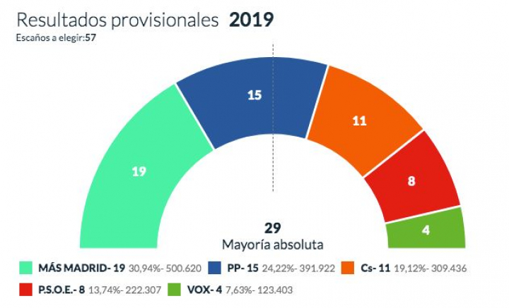 Sí los obtiene Martínez Almeida, que necesitará el apoyo de Villacís (Ciudadanos) y Ortega-Smith (Vox).